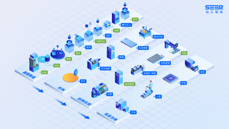 核心提示:本篇將為大家解讀,仙工智能基于半導(dǎo)體行業(yè)最后一環(huán)『成品倉(cāng)儲(chǔ)』的解決方案。下圖為半導(dǎo)體整體工藝流程圖,其中藍(lán)色標(biāo)注點(diǎn)為『仙