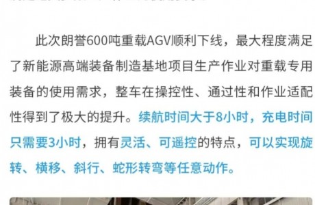 朗譽600噸重載AGV下線。