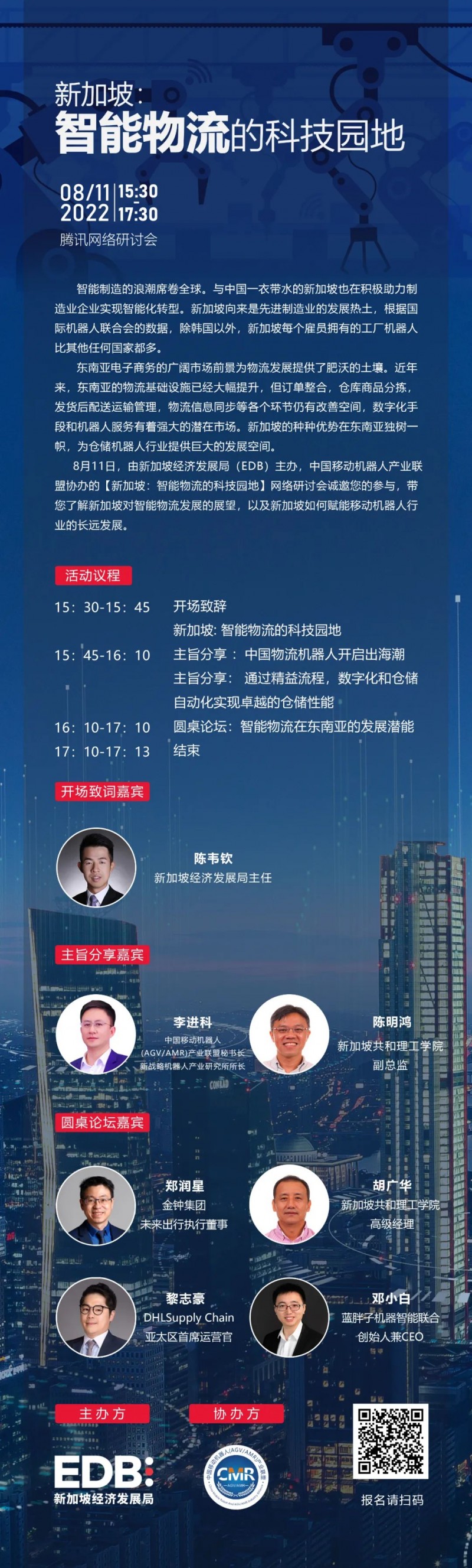 8月11日,由經發局EDB主辦的“新加坡:智能物流的科技園地”網絡研討會將有多位專家出席,深入介紹新加坡作為全球頂級物流科技園地的各類優勢,幫助中國物流倉儲機器人企業及時把握出海機遇,實現突破發展。