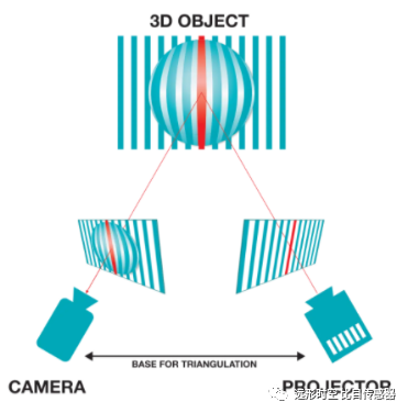 結構光的工作方式是用投影機將特定的光學圖案投射到視野中待觀測物體的表面,然后使用相機進行拍攝,從而獲知3D深度信息。常用的光學圖案有點狀圖案、條紋狀圖案、或者具有色彩編碼的光學圖案,有時也使用隨時間變化的圖案。相機和投影機被固定連接在一起,因此相機相對于投影機的位置和角度是固定不變的。因此,相機拍攝到的是投射出的光學圖案打到待觀測物體表面而形成的變形后的狀態。通過計算投射出的原始圖案和拍攝到的實際圖案之間的差異,即可重建相機視場中的3D深度信息,并輸出深度圖像。結構光方式對于透明物體,高反光率的表面,以及大范圍視場的效果不夠理想。另外這種方式的劣勢還包括:當多臺設備的探測視場在同一個區域內出現重疊,或者外界環境光、其他光源和投影機打光的波長相同的時候,會造成明顯的干擾而導致性能惡化。結構光方式的優勢則是在較小的工作范圍下,可以通過相對有限的成本得到較高的精度。