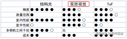 綜合到移動機器人在非結構化場景中的應用,對照上表的性能對比可以看到主動雙目深度相機無疑是最好的選擇。首先雙目原理兼顧了室內室外場景,避免了多機的干擾,對于環境具有最高的適應性;同時在測量范圍和測量精度上也具有非常好的性能兼顧;最后雙目系統可以非常好地平衡成本,做到價格可控。