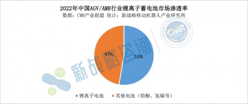從市場滲透率來看,2022年,在AGV/AMR行業(yè),鋰離子蓄電池的市場滲透率超過50%,已經(jīng)成為行業(yè)應(yīng)用的主流。
