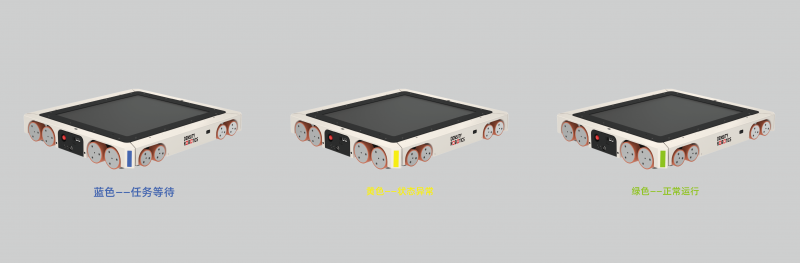 在車體四角設(shè)計(jì)狀態(tài)燈,黃色——異常;藍(lán)色——等待;綠色——正常,用戶第一時(shí)間可以通過(guò)警示燈顏色了解車體的狀態(tài),保障立體庫(kù)的穩(wěn)定運(yùn)行。