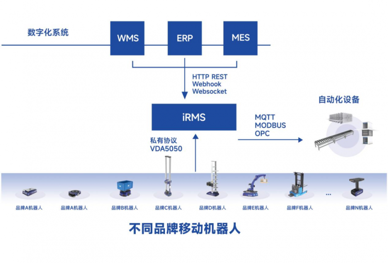當前,面向倉儲領域,牧星可提供全系列的移動機器人產品:包括貨架到人、料箱到人、MIX貨到人解決方案等各種機器人智能倉儲綜合解決方案,以及開放的全場景機器人混合調度系統iRMS。