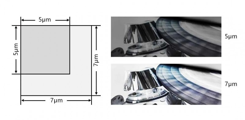 新款相機像元尺寸為7μm × 7μm,感光面積增大,看見更多細節(jié)、有效提升亮度,在曝光時間受限或高行頻需求場景中可一展身手。
