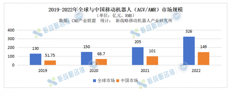 圖表:2019-2022年全球與中國移動機器人(AGV/AMR)市場規模