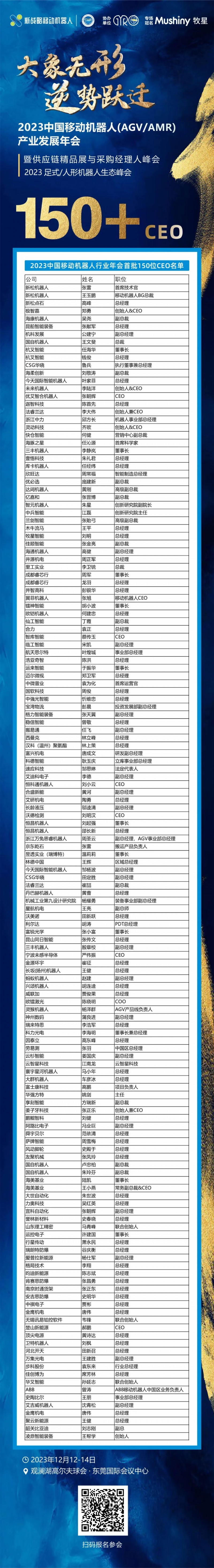 2023中國移動機器人行業年會首批150位CEO參會名單