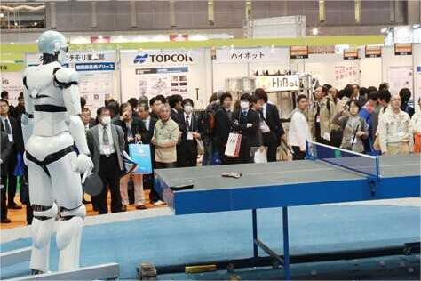 越南研制的TOPIO是一個真人大小的類人機器人,內置攝像頭,可以看到對手擊中的乒乓球并做出反應,幫助初學者更快提高技術。