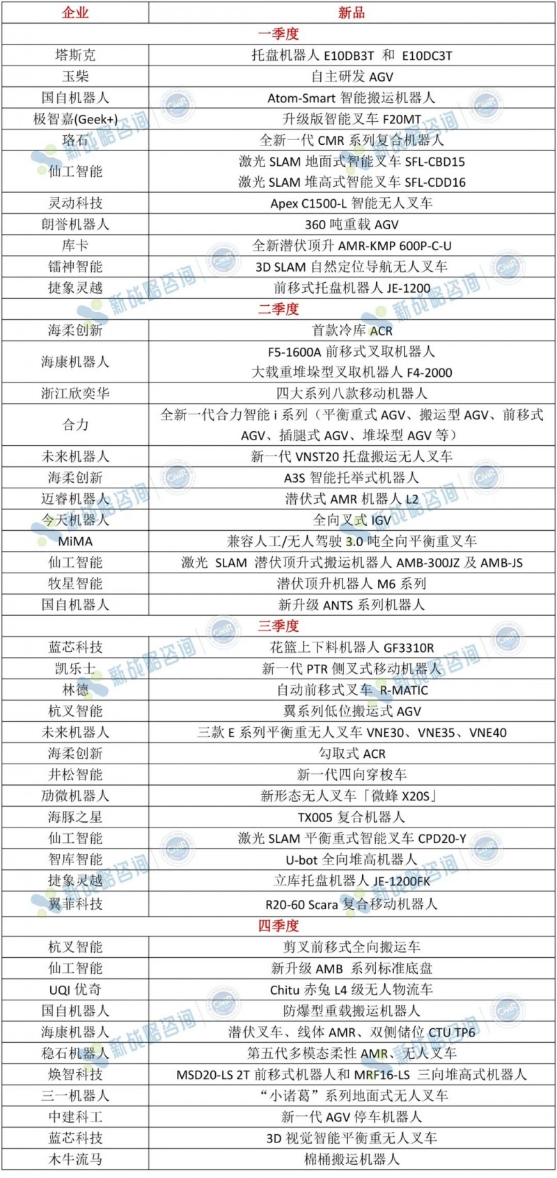 根據CMR產業聯盟數據,新戰略移動機器人產業研究所不完全統計,2023年,國內移動機器人企業推出了超50款AGV/AMR新品,產品類型豐富,各有其獨特的應用場景和技術特點,展示了中國移動機器人企業的創新能力。