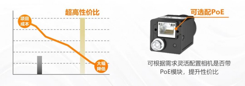 通過精簡相機資源、選配POE模塊,保留“恰到好處”的功能,在滿足廣泛視覺檢測與分析應用需求的同時,還提供了超高性價比。