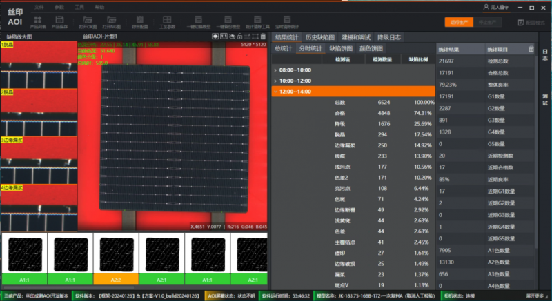 為了更好地追溯電池組件的全流程質量,海康機器人定制開發了光伏組件決策看板,從單站檢測到各個機臺的集控復判,整個工廠的數據匯總、運行狀態一目了然。