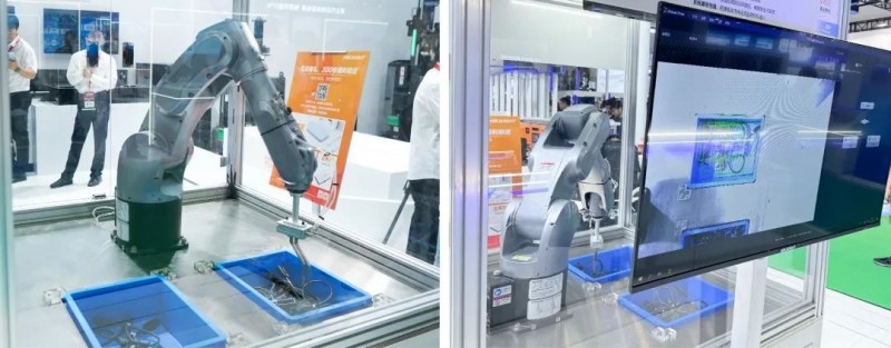 該環(huán)節(jié)還展示了覆膜碼讀取方案、疊焊檢測(cè)方案、光伏接線盒抓取方案。