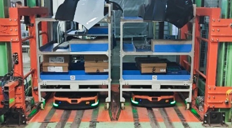 針對電驅和電池成品下線場景,海康機器人提供了標準基線的移載式移動機器人和潛伏機器人自動對接立庫搬運解決方案,在整廠項目業務場景中,實現原材料出庫,分揀,線體間和成品入庫全流程物料配送以及空載具轉運的自動化。