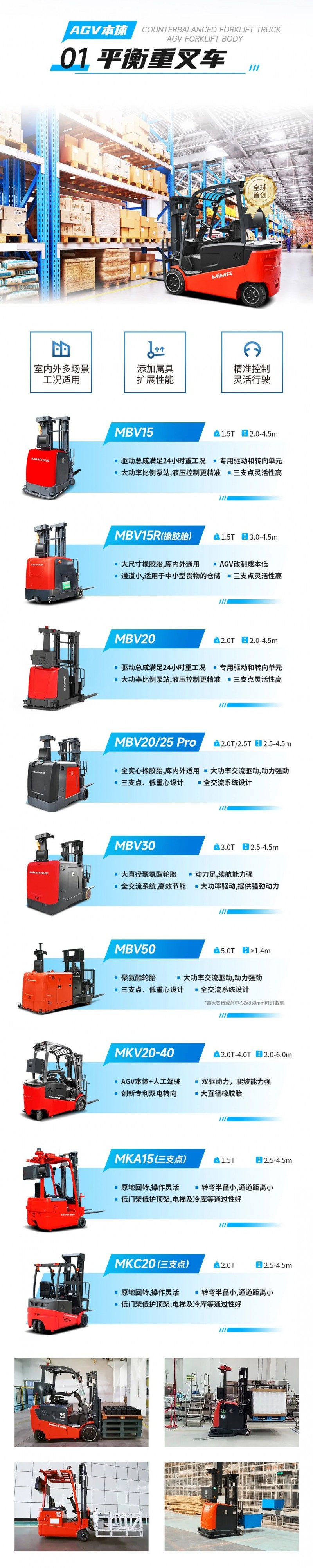 合肥搬易通MiMA米瑪|全系列專業(yè)AGV叉車本體產(chǎn)品矩陣