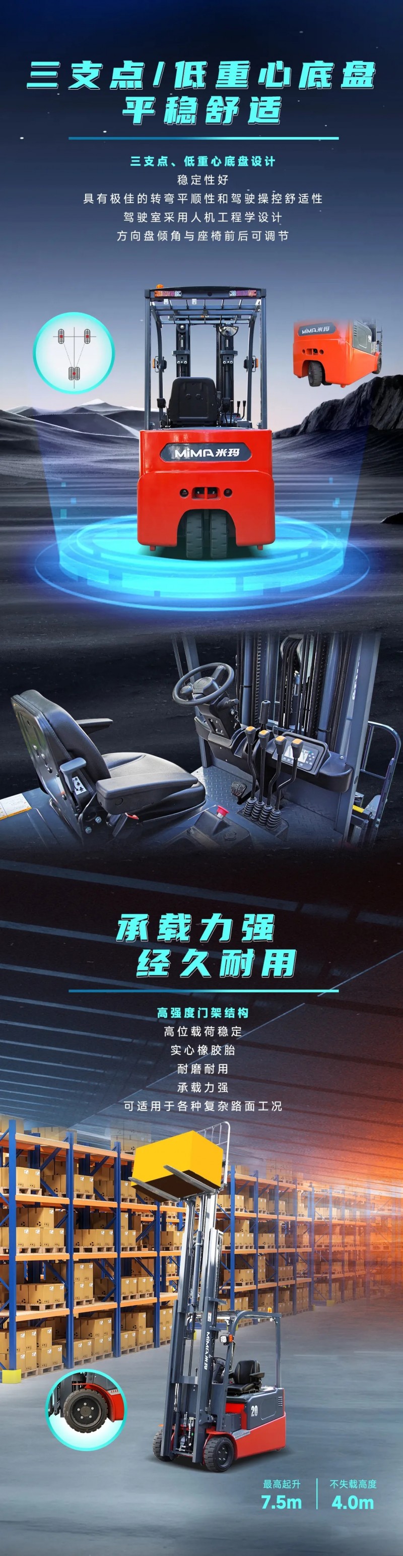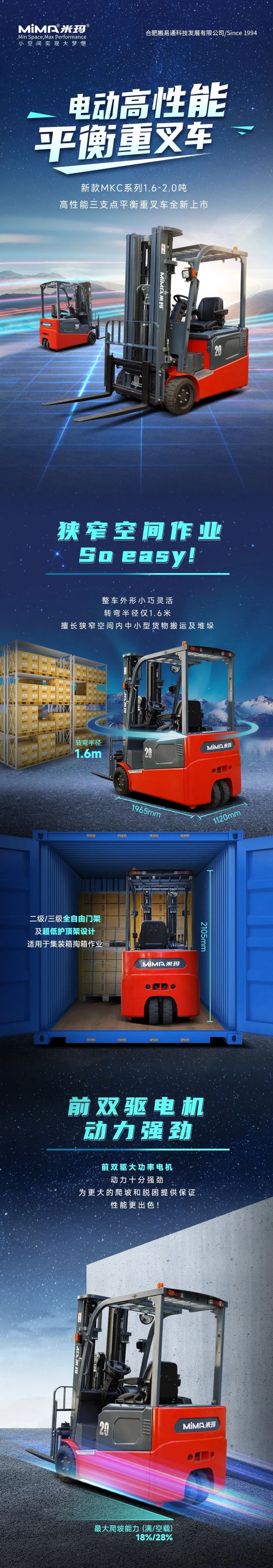 狹窄空間作業(yè)超City! MiMA米瑪1.6-2.0噸高性能三支點(diǎn)平衡重叉車全新上市!