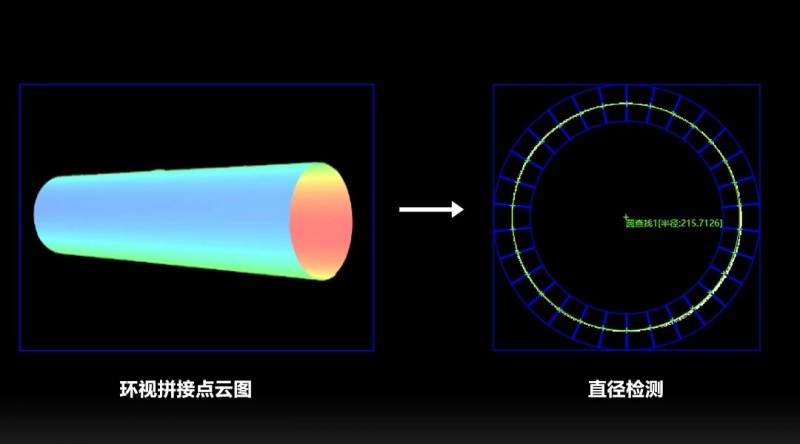 相比傳統(tǒng)游標卡尺/測徑儀的測量方式,環(huán)視拼接可實現(xiàn)物料在線、非接觸式直徑測量和表面缺陷檢測;相比單輪廓傳感器方案,獲取信息更加全面,效率更高。