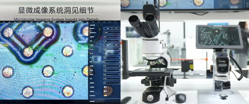 第一套是海康機器人自研的變倍體式顯微成像系統,減輕工廠檢驗人員長時間檢測帶來的眼睛疲勞,且相機內部植入了幾何測量算法,可完成點、線、圓、矩形、角度等測量。
