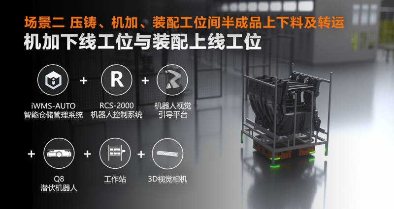 場景二 壓鑄、機(jī)加、裝配工位間半成品上下料及轉(zhuǎn)運
