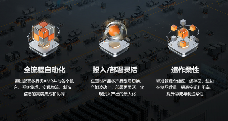 因此,海康機(jī)器人創(chuàng)新推出了電驅(qū)小件標(biāo)準(zhǔn)件全流程解決方案、電驅(qū)車間分總成工序轉(zhuǎn)運全流程解決方案,實現(xiàn)了物流、制造、信息的高度融合與協(xié)同作業(yè),提升了運作的柔性。