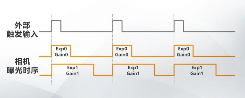 相機支持多重曝光功能(Multi Exposure),可支持自定義設置2組曝光時間及增益,適用于明暗場的檢測場景。