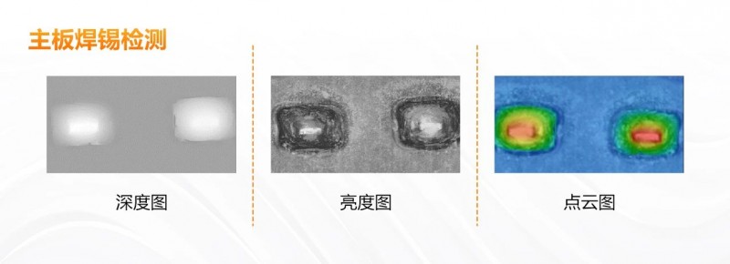 使用雙目單線激光輪廓傳感器,通過VM3D算法平臺進行面面測量、體積測量,相關算子可以對主板上焊錫的高度、體積以及橋連、拉尖等不良進行有效檢測。