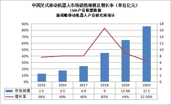 據中國移動機器人(AGV)產業聯盟數據、新戰略移動機器人產業研究所統計,2020年中國叉式移動機器人(含視覺導航)銷量達5000臺,較之于2019年的2700臺增長幅度為85%,市場規模約為17億元,較之于2019年增長31%,其中激光反射板產品約為3400臺。