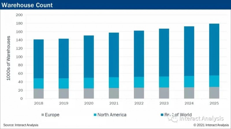 截至2020年底,15萬個(gè)倉儲(chǔ)遍布全球,占地約250億平方英尺。疫情以及發(fā)展中地區(qū)人們對(duì)于消費(fèi)品的需求推動(dòng)了人們選擇線上購物,因此未來五年需要增加28500個(gè)倉儲(chǔ)中心。這些新倉儲(chǔ)中有相當(dāng)一部分是直面消費(fèi)者的配送中心,這些配送中心需要投資大量勞動(dòng)力和自動(dòng)化設(shè)備。