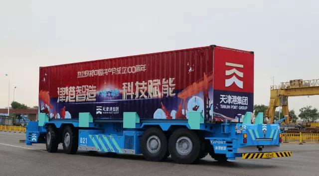 6月,天津港集團(tuán)創(chuàng)新研發(fā)、生產(chǎn)制造的首臺(tái)人工智能運(yùn)輸機(jī)器人正式下線,投入天津港C段智能化集裝箱碼頭進(jìn)行測(cè)試。該產(chǎn)品配備了一套智能可視化管理系統(tǒng);采用4軸8輪底盤系統(tǒng),實(shí)現(xiàn)全輪驅(qū)動(dòng)和轉(zhuǎn)向;總重量?jī)H23噸,載重65噸,最高速度35千米/小時(shí),可裝載20尺、雙20尺、40尺、45尺標(biāo)準(zhǔn)集裝箱。