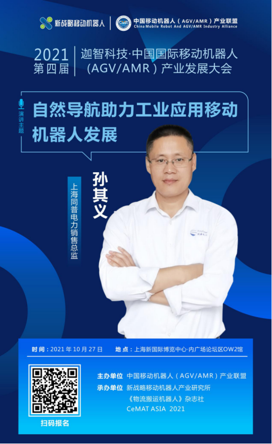 自然導航+AGV究竟會掀起什么樣的浪花?10月27日,在由中國移動機器人(AGV/AMR)產(chǎn)業(yè)聯(lián)盟主辦的《第四屆國際移動機器人大會》上,上海同普電力銷售總監(jiān)孫其義將帶來“自然導航助力工業(yè)應(yīng)用移動機器人發(fā)展”主題分享,敬請期待!