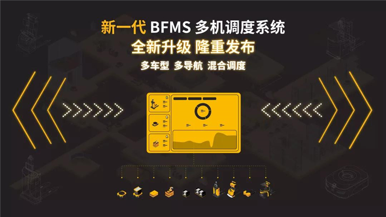 BFMS多機調度系統是多臺移動物流設備的智能調度中央管理系統,管理不同類型的多臺設備的協作,實現多機器人的任務分配、路徑規劃、調度協同、交通管制等功能。