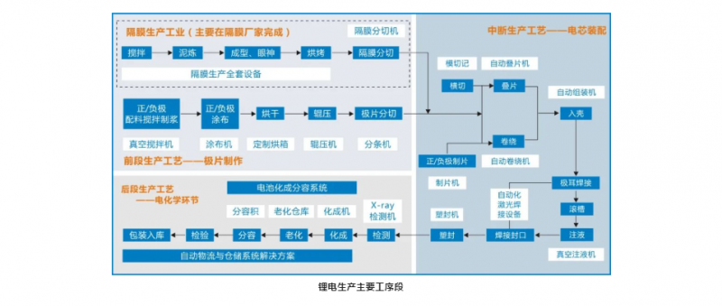 鋰電的生產(chǎn)工序分為前中后三段。